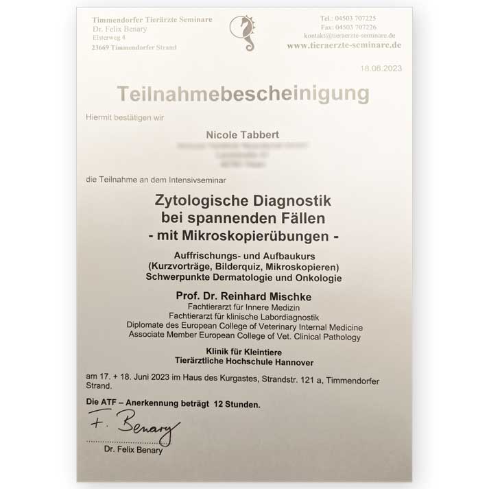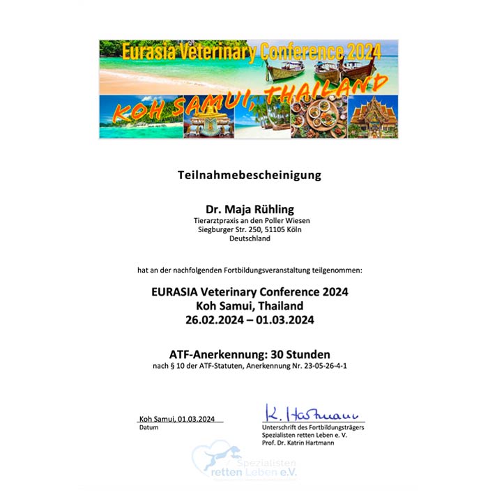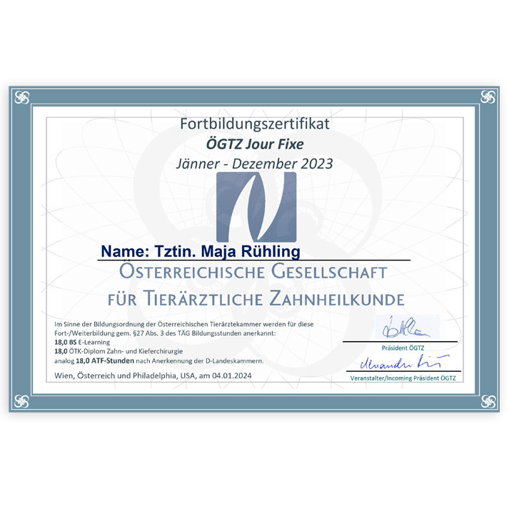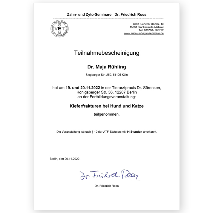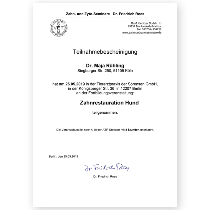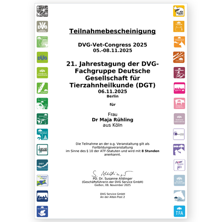 Weiterbildungen vor allem im Bereich Zahnheilkunde und Kleinsäuger.