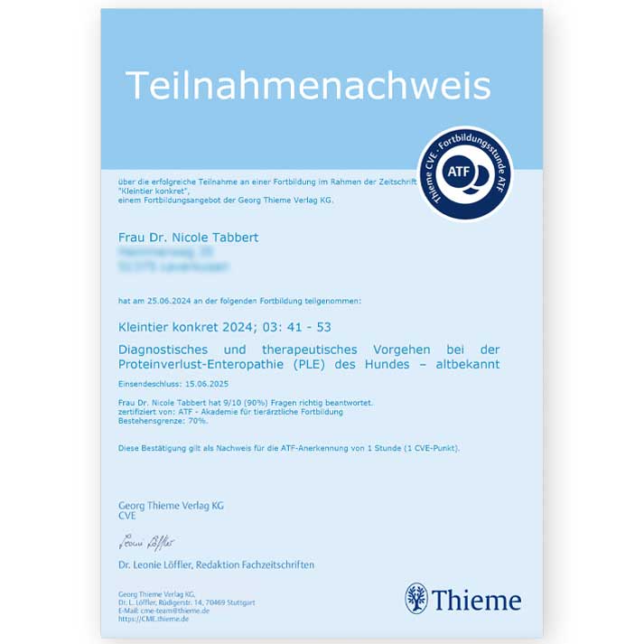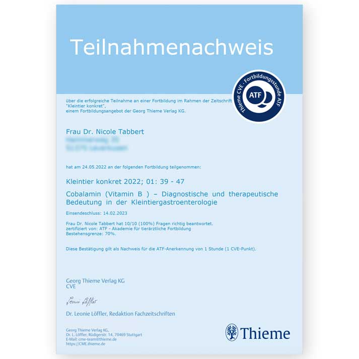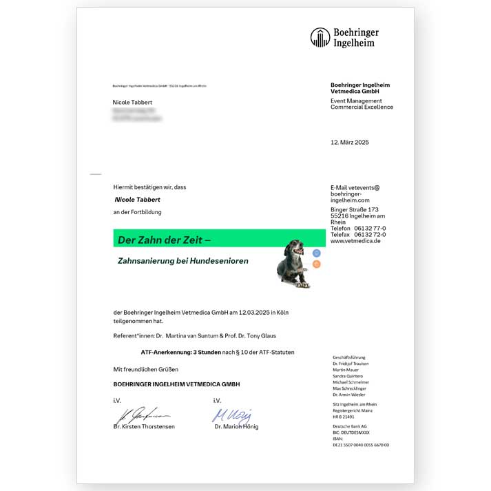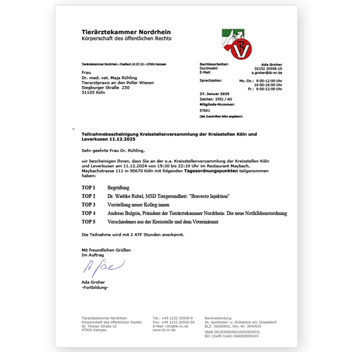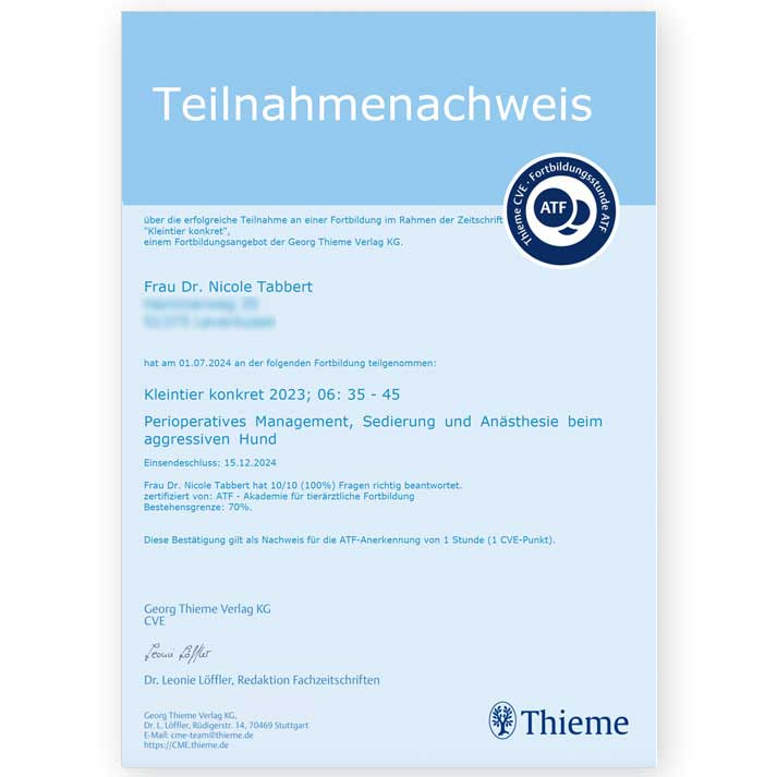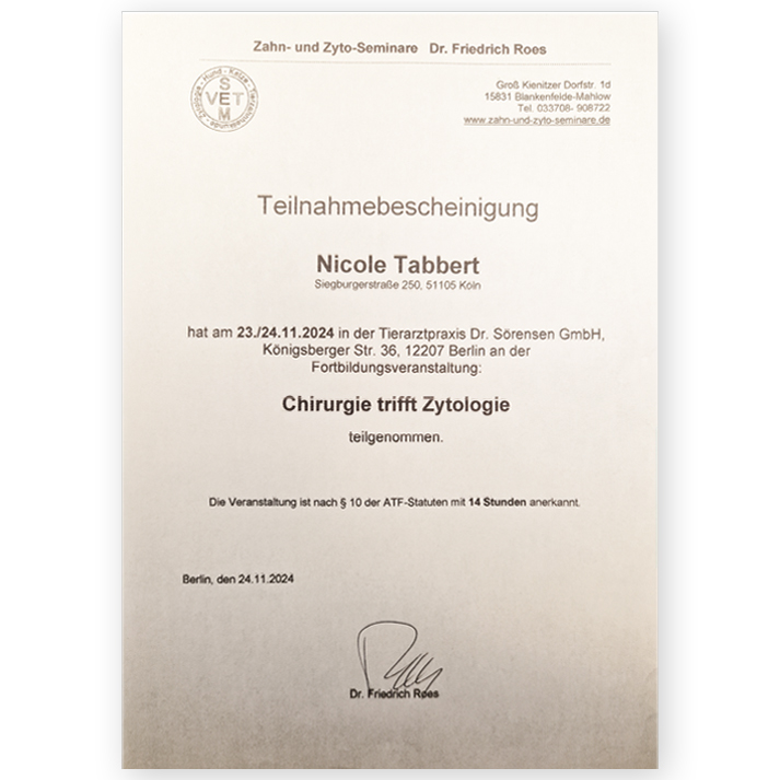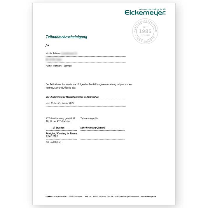 Weiterbildungen vor allem im Bereich Zahnheilkunde und Kleinsäuger.