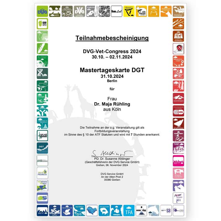 Mitgliedschaft in der DVG Fachgruppe DGT und DGK.